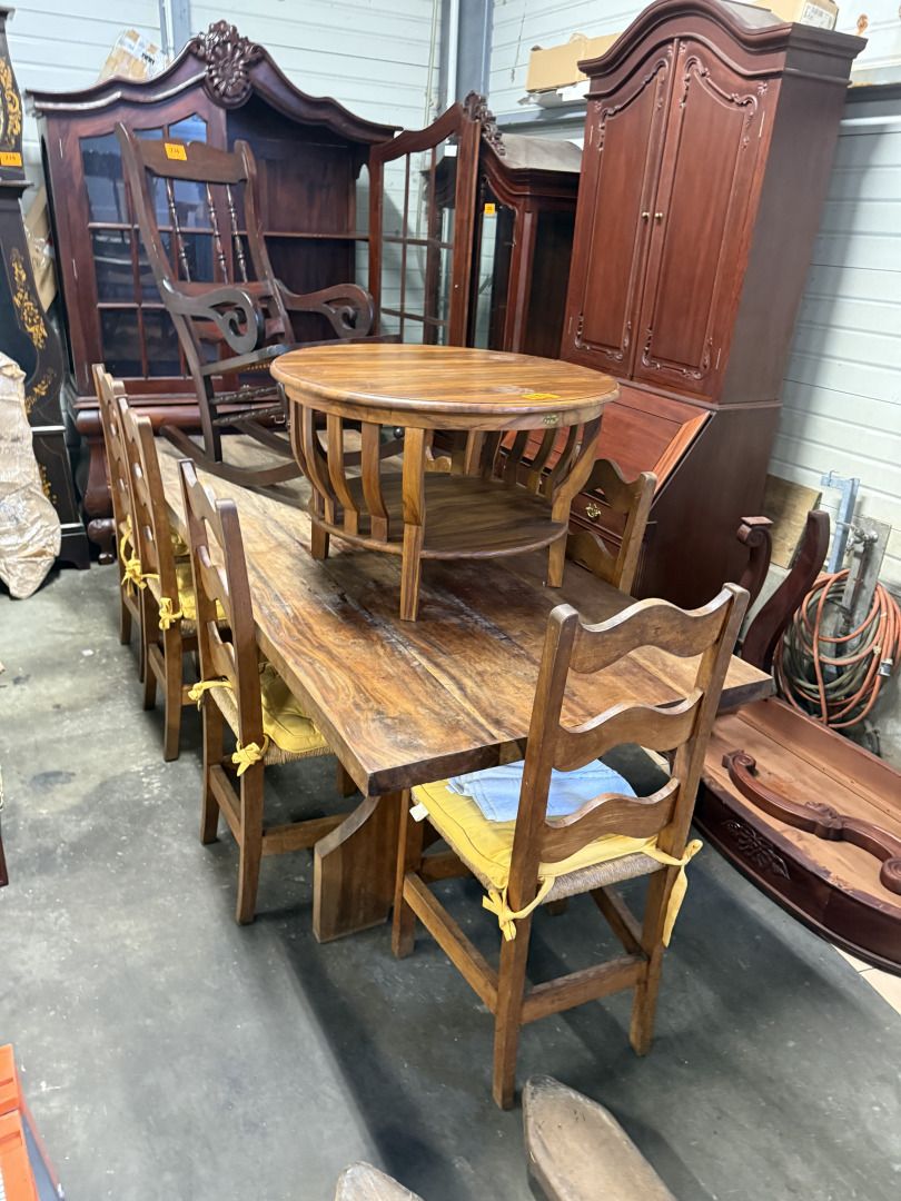 Table rectangulaire de salle à manger et 6 chaises paillées.