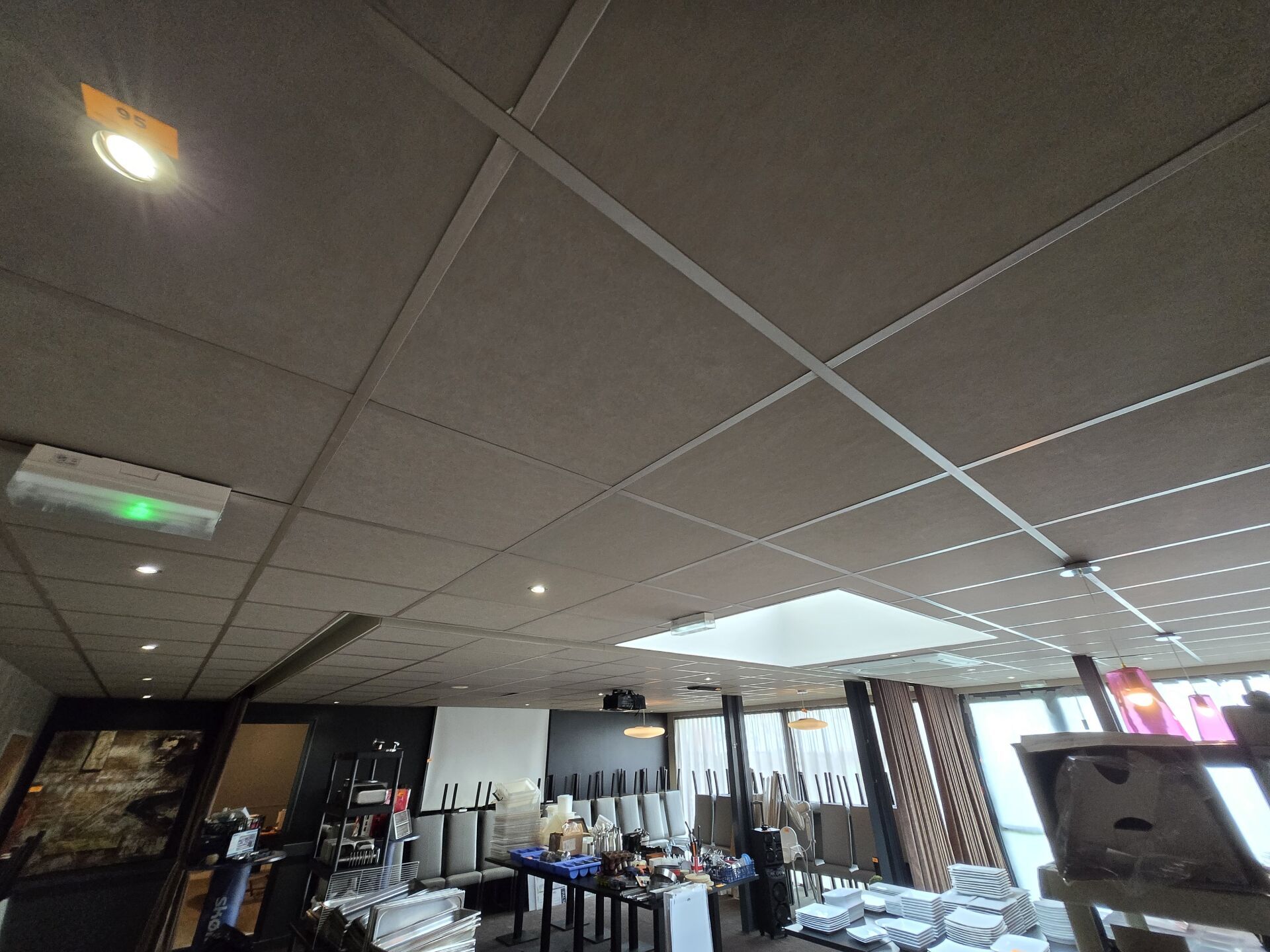 Faux plafond beige (8.00 x 13.80), dalles et traverses avec isolation IBR/laine de verre 200