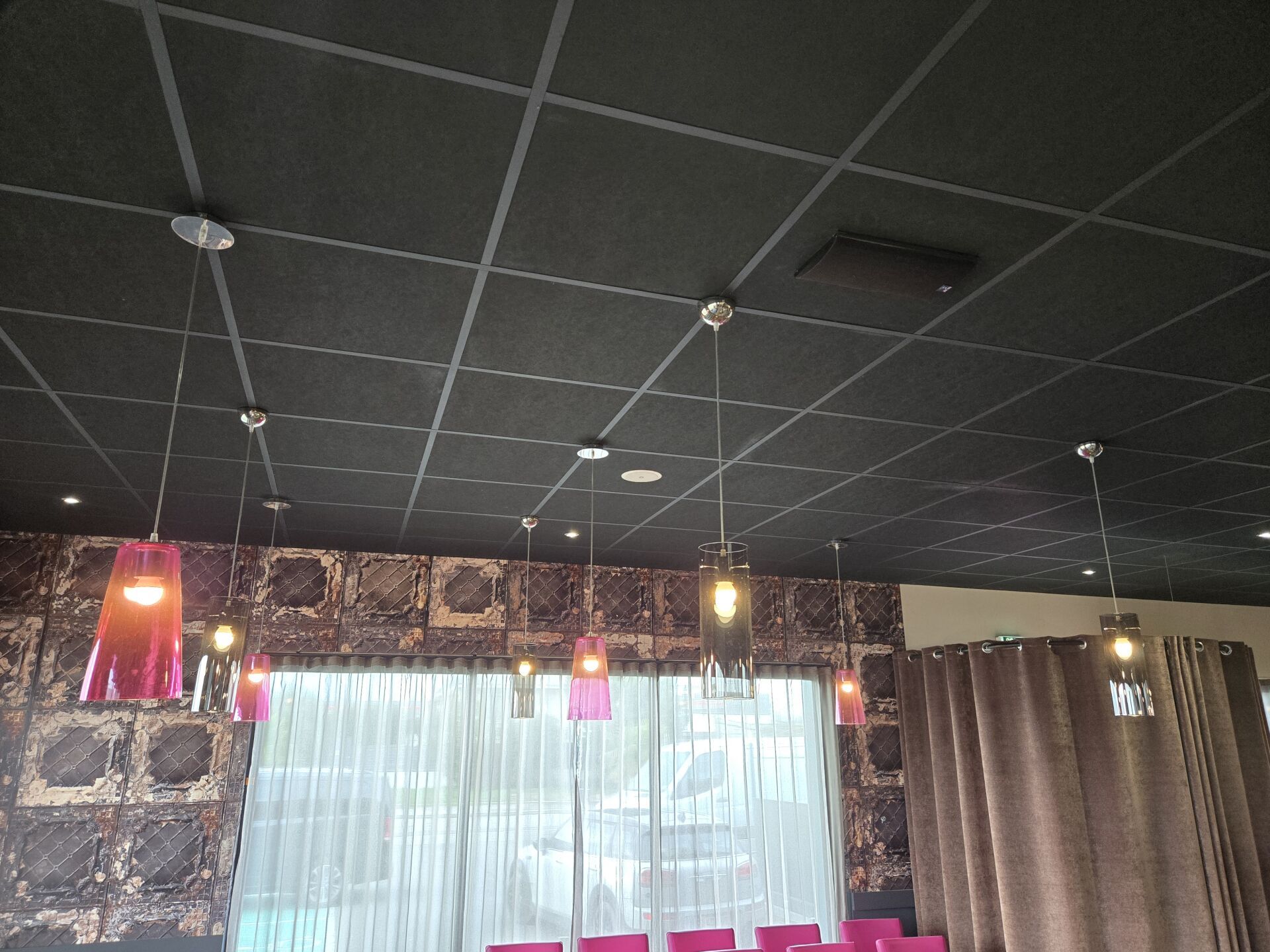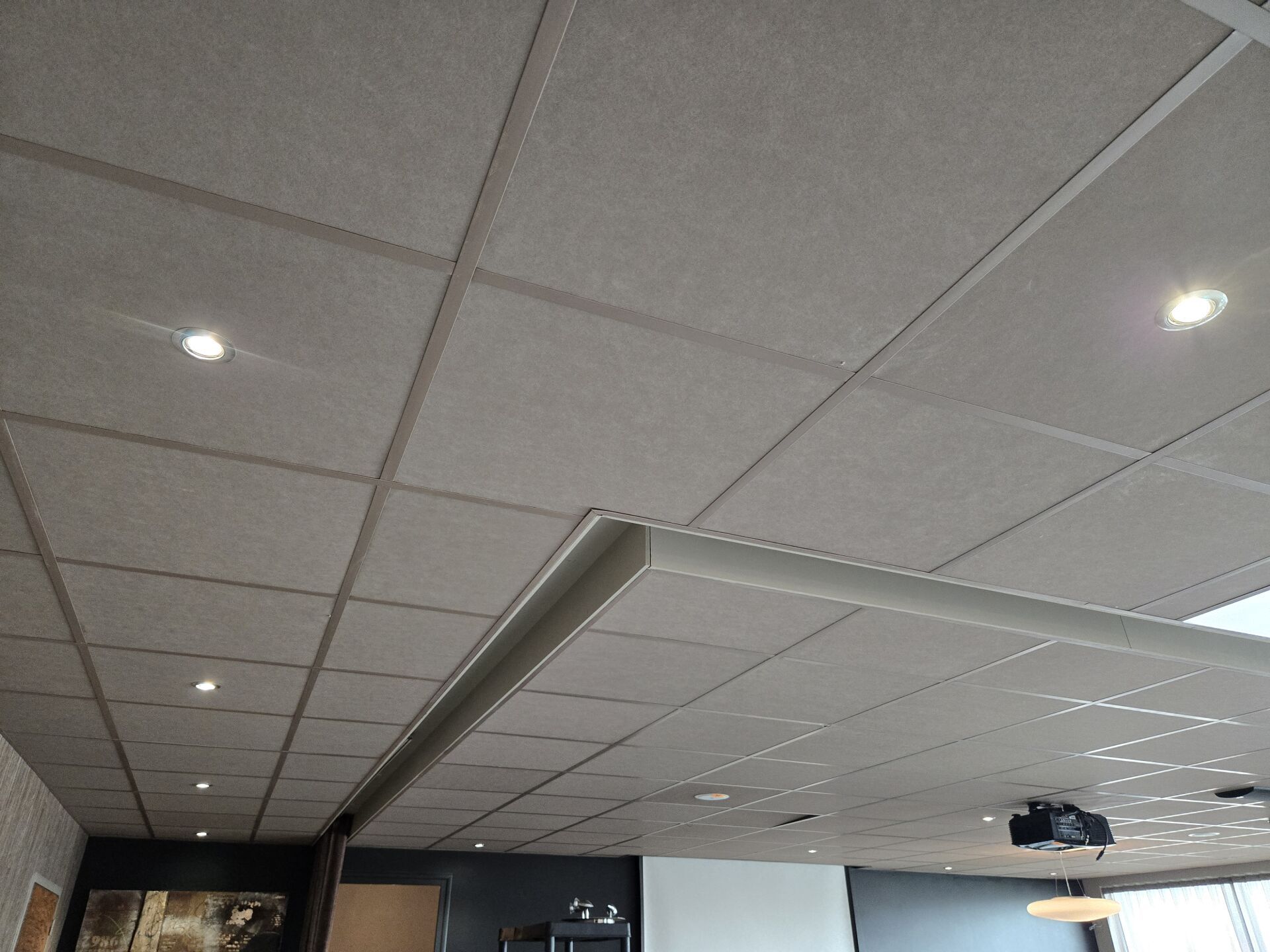 Faux plafond beige (8.90 x 12.90), dalles et traverses avec isolation IBR/laine de verre 200