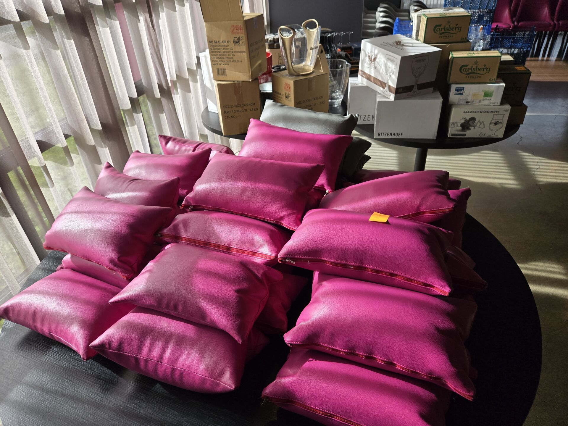 Environ 36 coussins fuchsia et gris