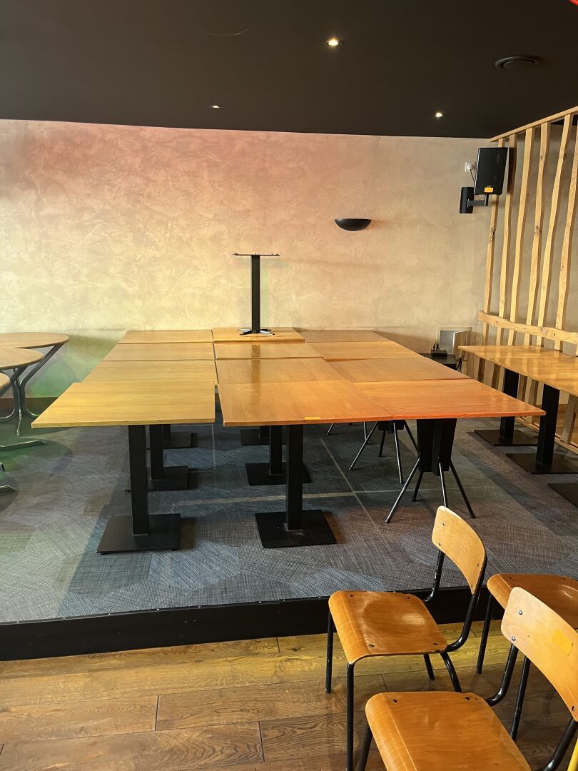 Important stock de vins, Matériel de sono, 32 Tables, 66 Chaises, 29 Tabourets, Mobilier de terrasse, 2 Vitrines réfrigérées et 2 Armoires réfrigérées…