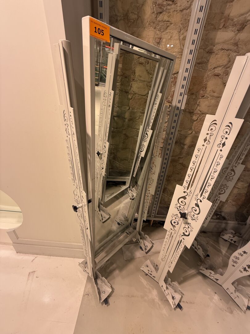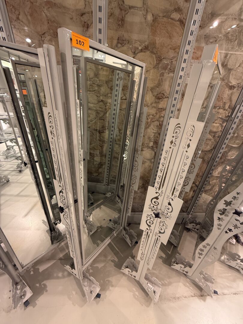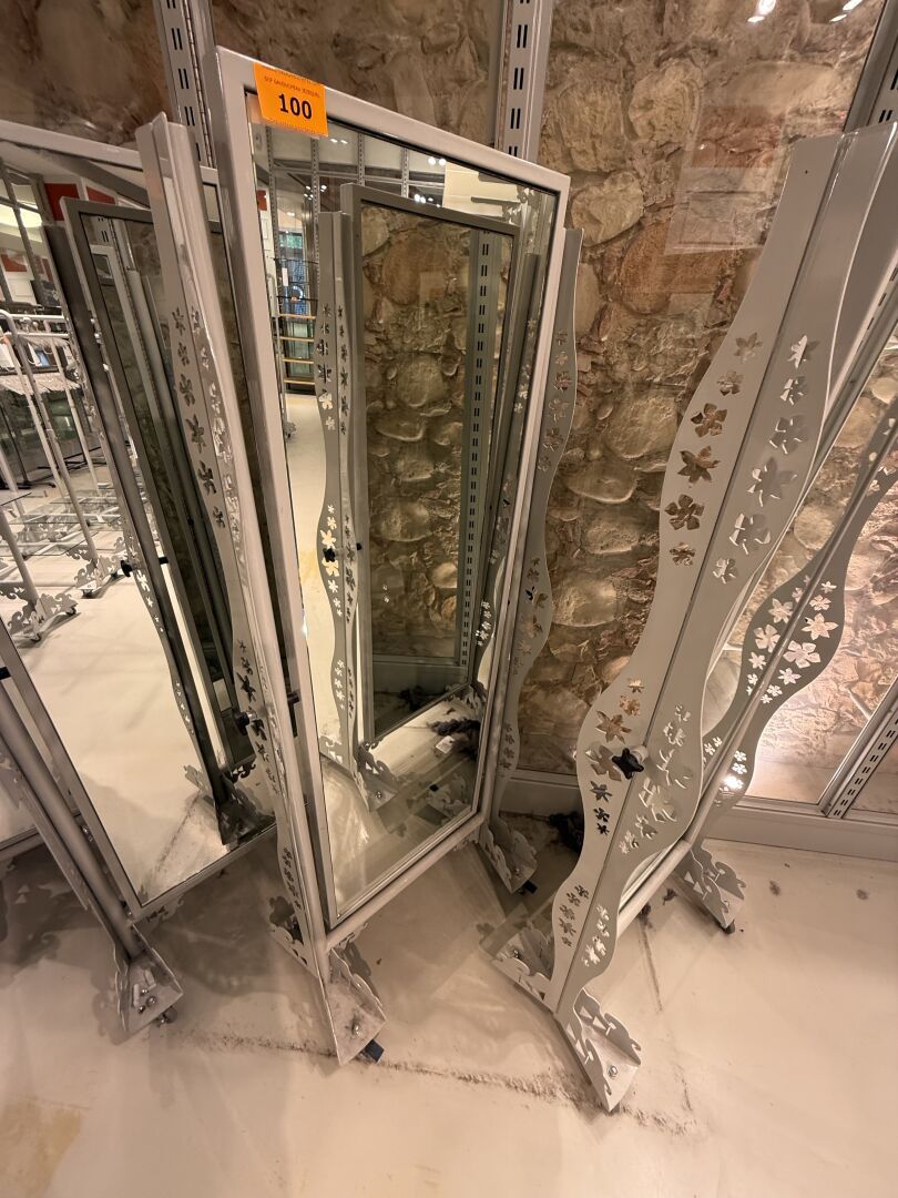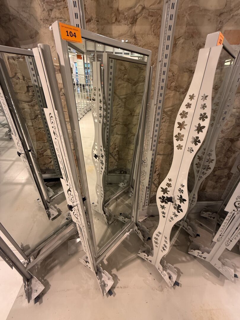 Miroir PSYCHE double face sur roulettes CRAZY REPUBLIC, monture en métal ajouré laquée grise.