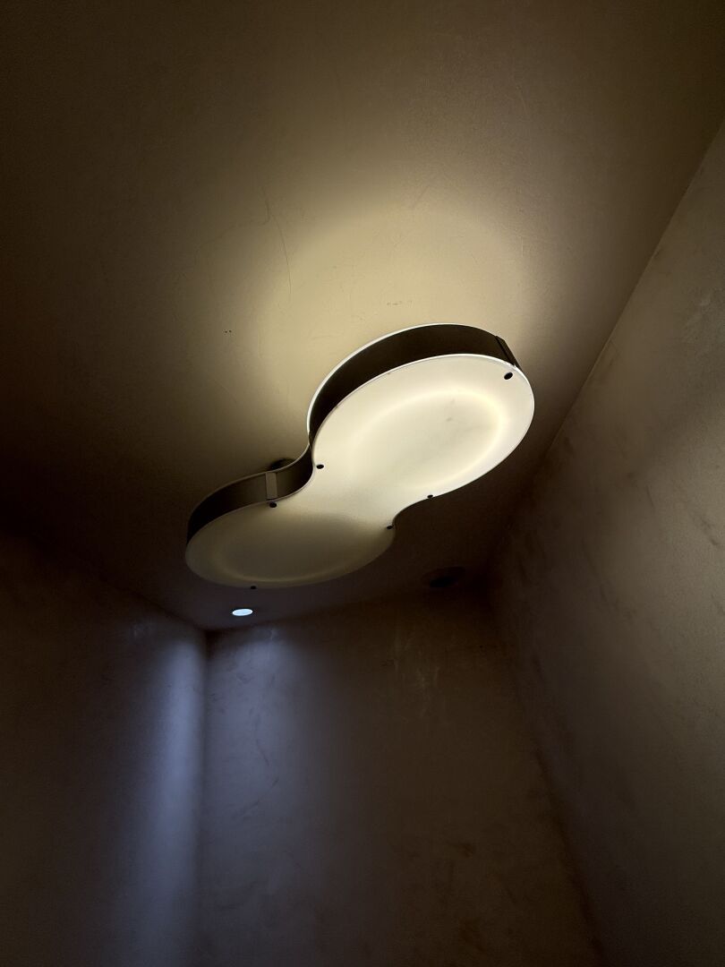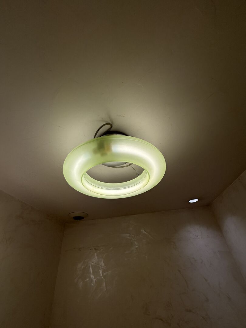 Suite de 6 plafonniers circulaires en PVC blanc translucide (à démonter soigneusement).