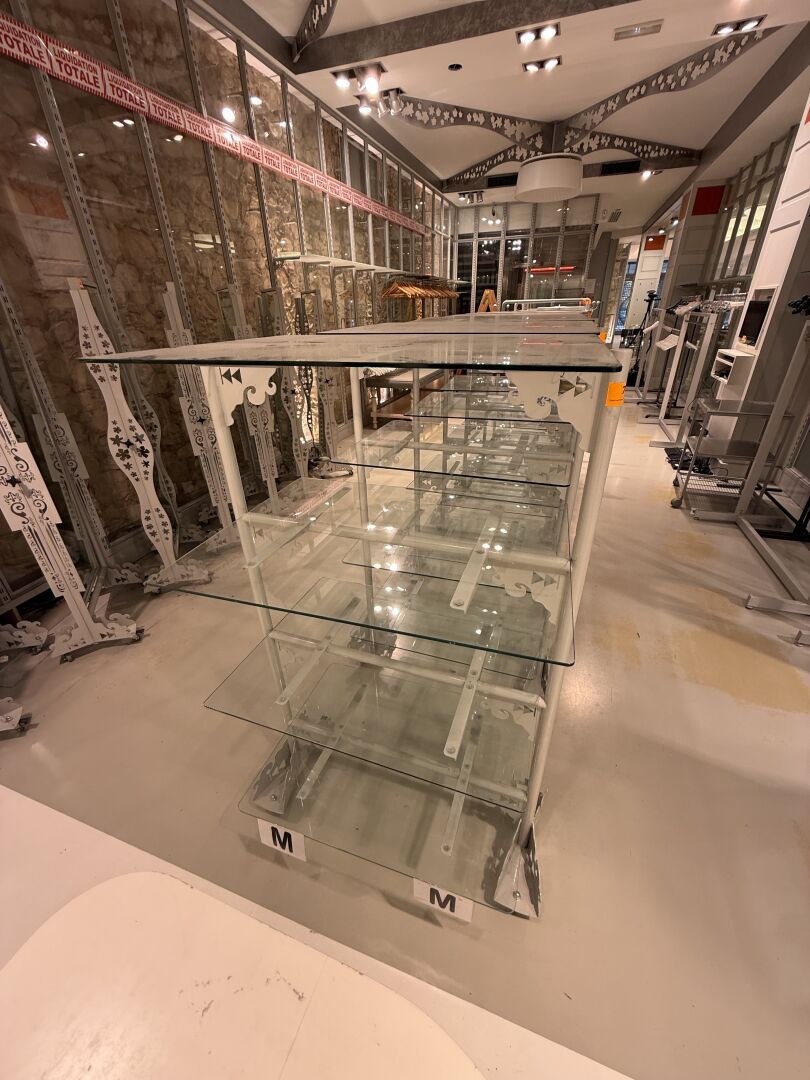 Structures en bois laqué gris (à prendre ou à laisser) imitation métal décoration de feuilles stylisés (environ 6m x 6m). A démonter soigneusement.