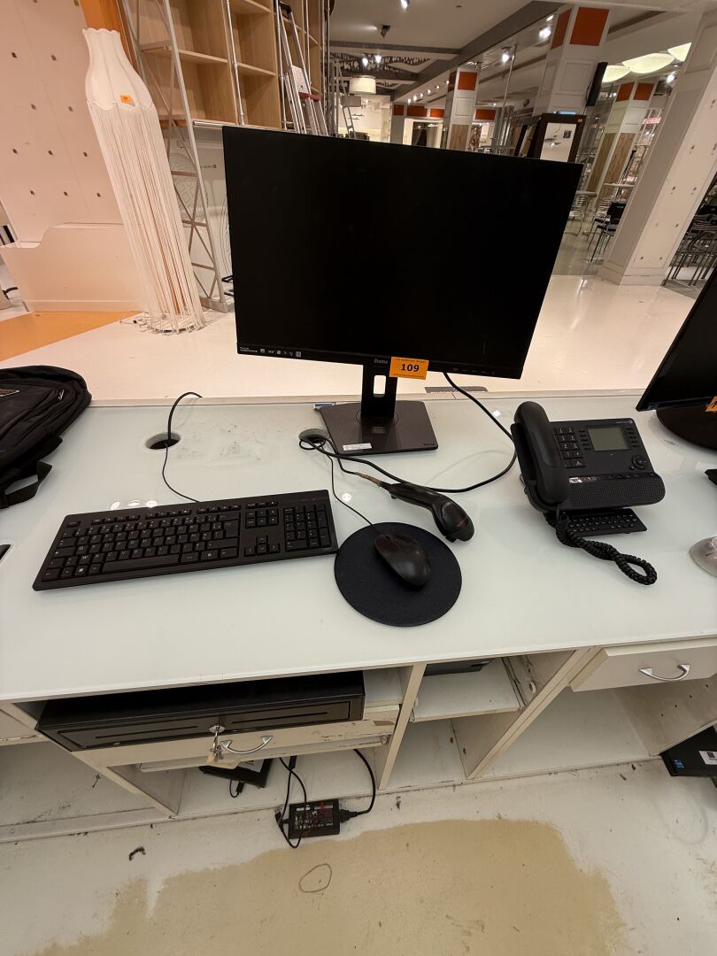 2 PC de caisse HP Core i5 incluant : Ecran Iiyama et Ecran AOC HS, 2 cléviers, 2 souris, 2 douchettes, 2 tiroirs de caisse, 2 imprimantes EPSON et téléphone.