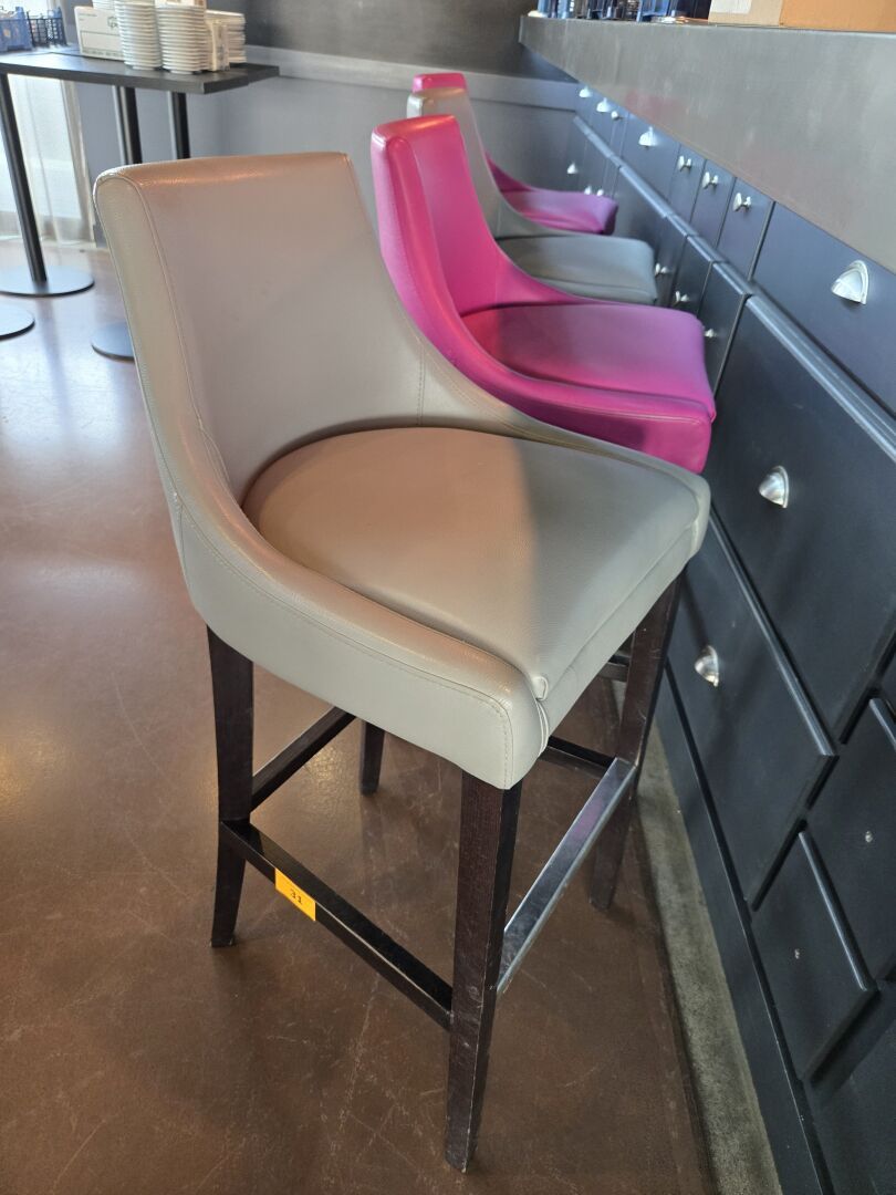 4 Tabourets de bar similicuir dont 2 gris et 2 fuchsia