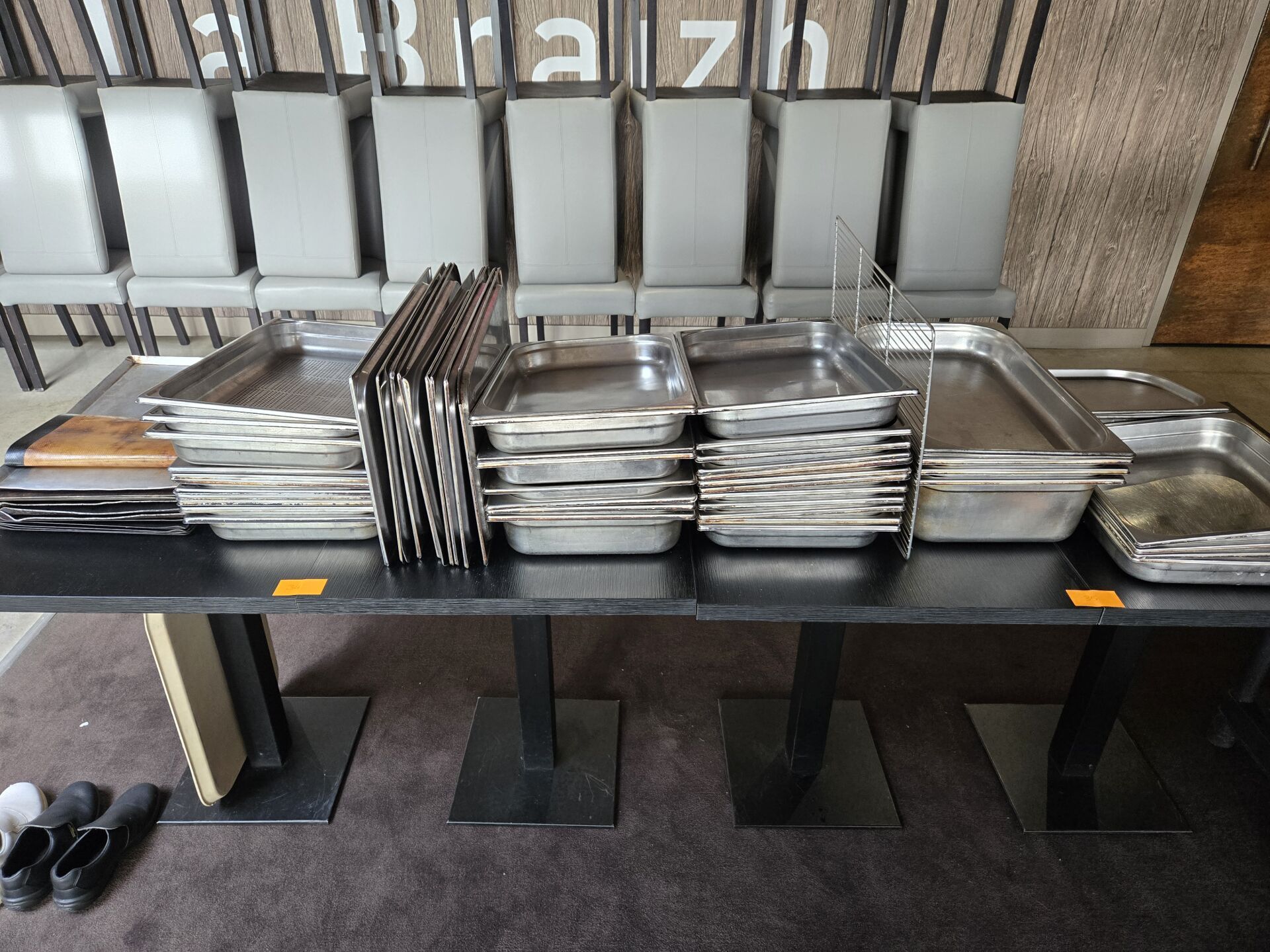 Environ 46 plats gastro avec environ 10 couvercles, 12 plaques de cuisson et 1 grille