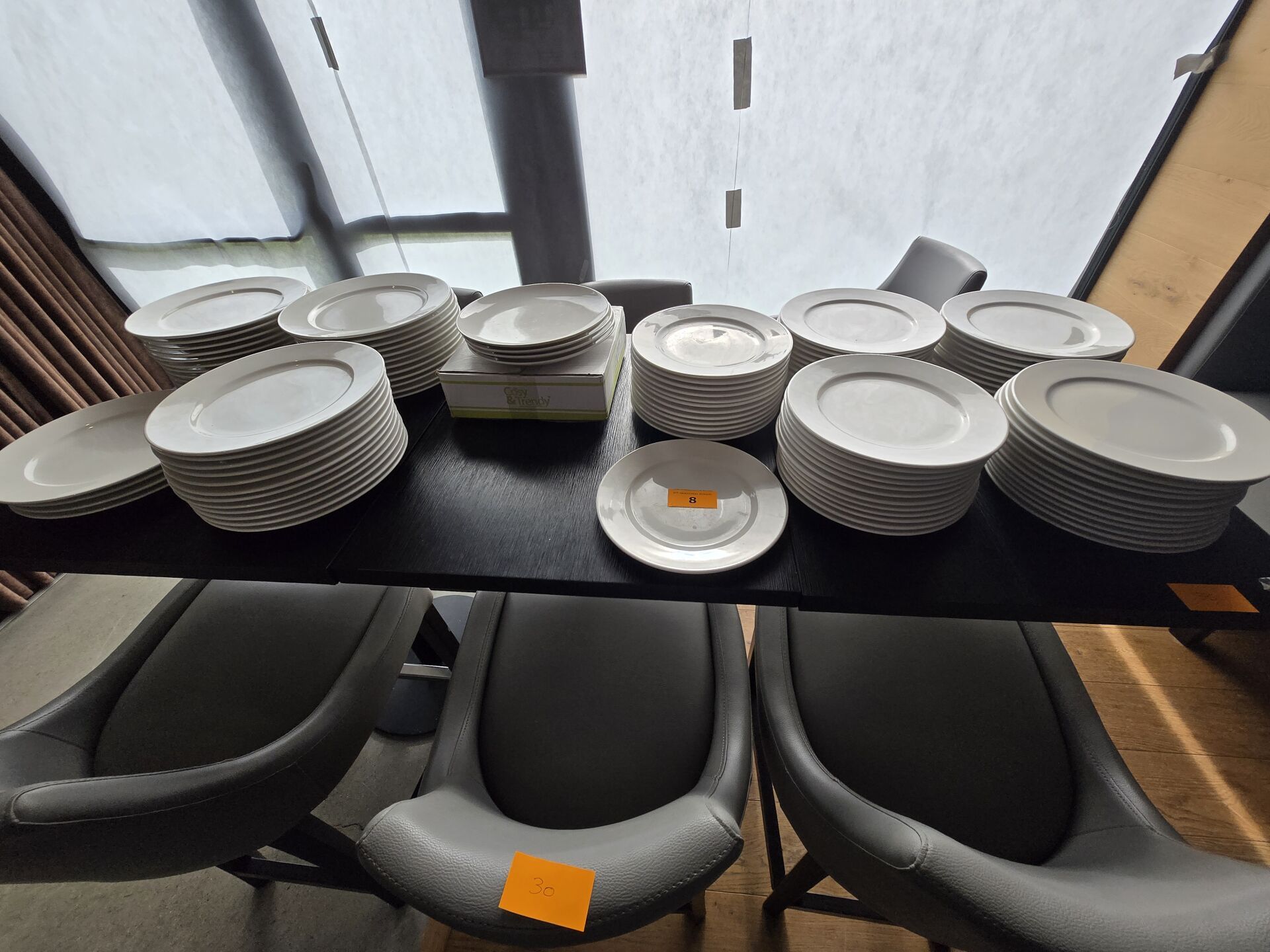 Environ 60 chaises en similcuir gris