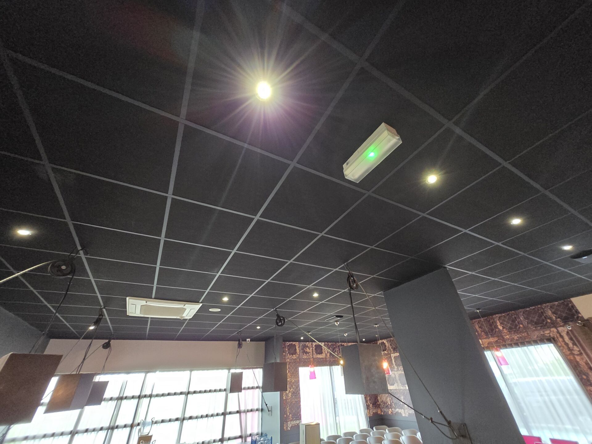Faux plafond beige (8.00 x 13.80), dalles et traverses avec isolation IBR/laine de verre 200
