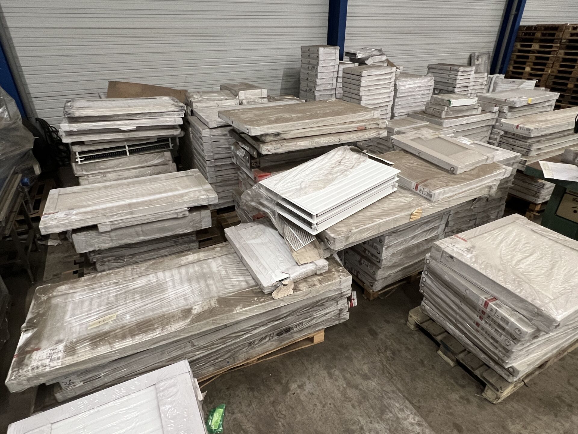 Stock récent de radiateurs de marque FINIMETAL modèle REGGANE 3000 (diverses dimensions) réparti sur environ 115 palettes.